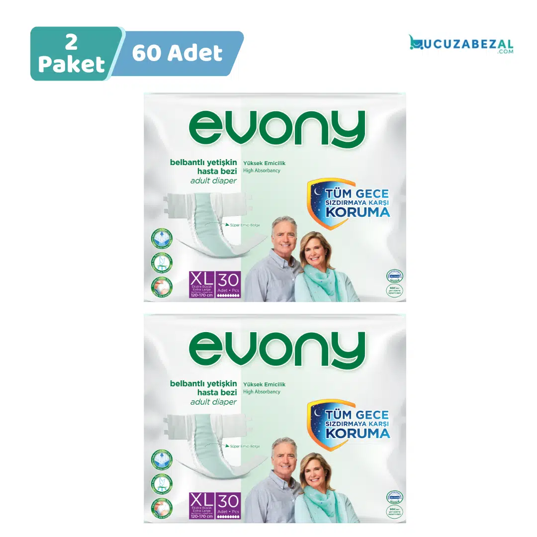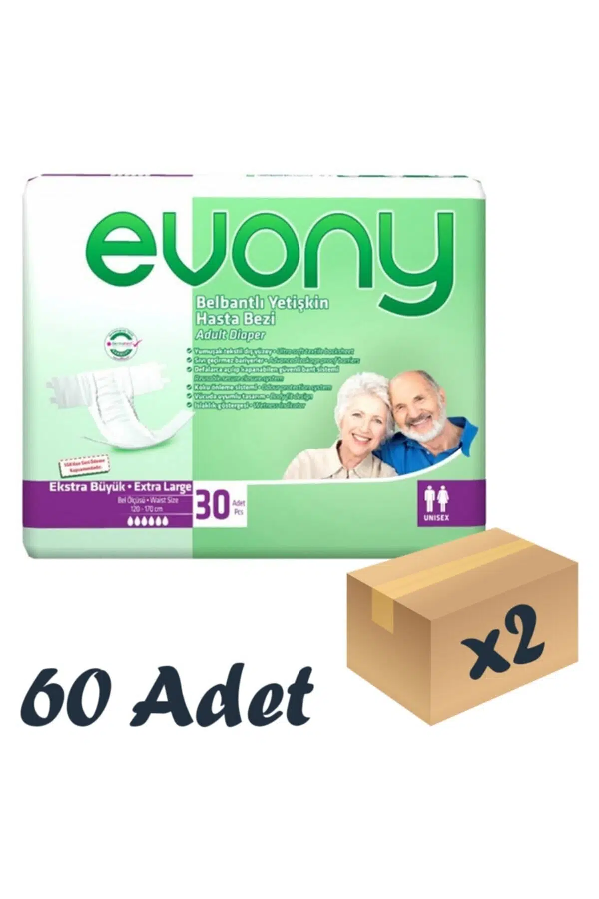 | Etiketler | Evony Bel Bantlı Yetişkin Hasta Bezi Xlarge 30'lu 2 Paket 60 Adet |